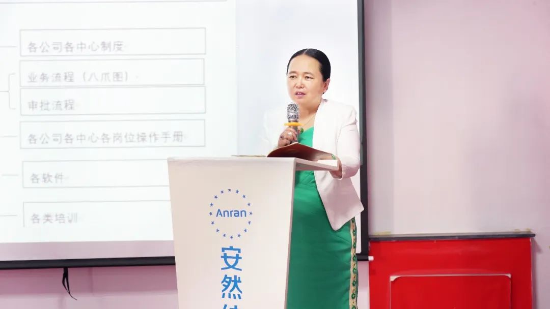 会议最后,安然集团副董事长、总裁梁浩女士为阿米巴信息化项目上线启动会做总结致辞,对项目组的辛苦付出给予高度肯定,对安然历时两年创造的阿米巴成果给予高度认可。